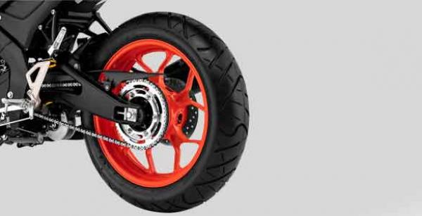 Front Tire : 110/70, Rear Tire : 140/70 Ban Tubeless lebar yang menyajikan kestabilan dan keamanan berkendara.