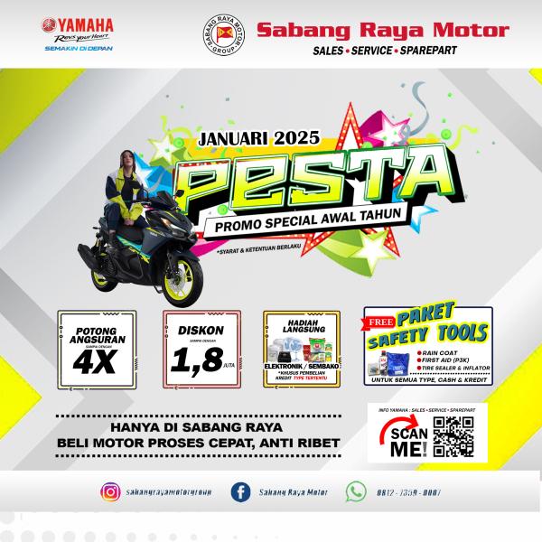 Nah di awal tahun ini admin mau kasih info buat brosist, klo di sabang raya motor lagi ada promo “Pesta” Promo Spesial Awal Tahun..
