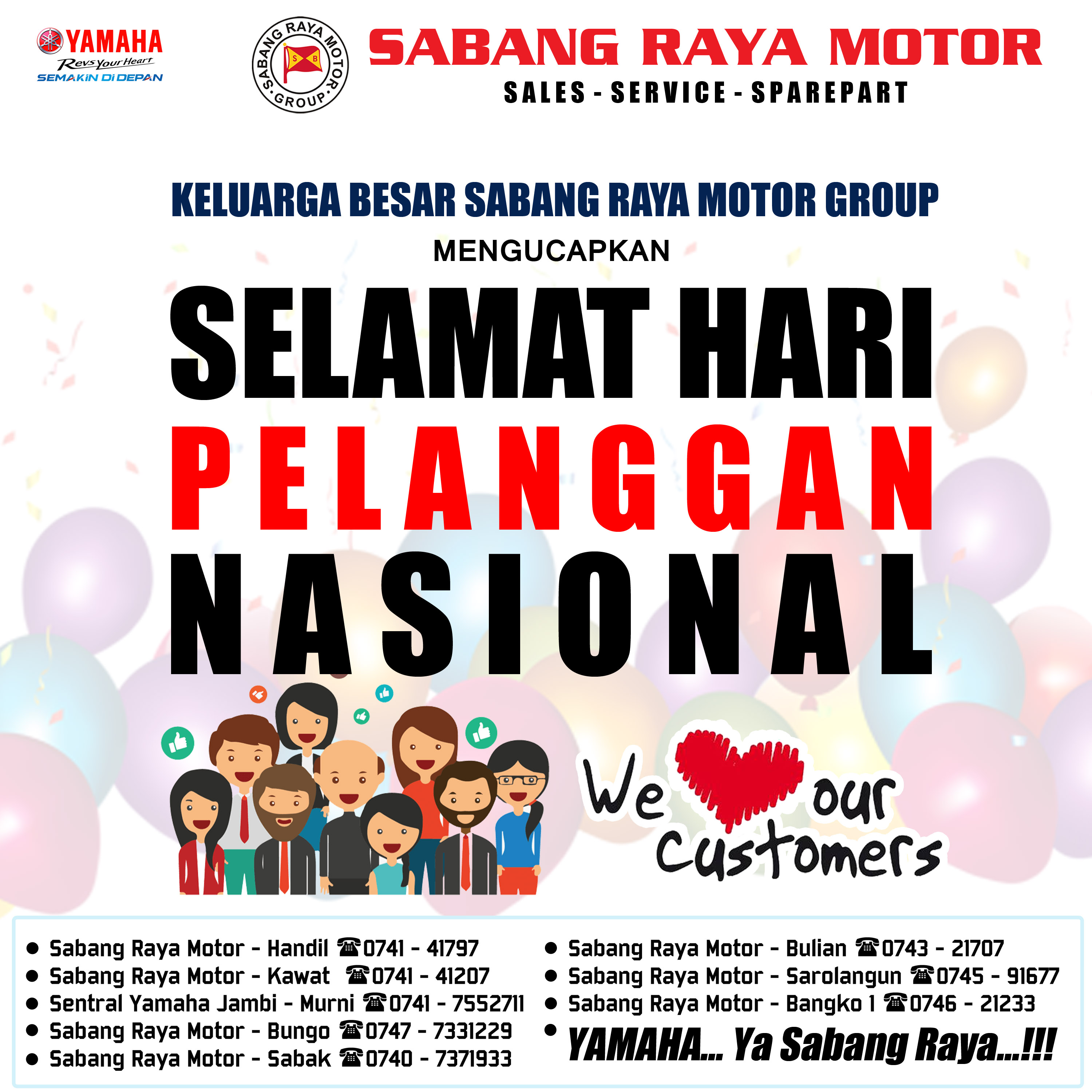 Sabangrayamotor.com, Jambi - Pada tanggal 4 September 2020 Sabang Raya Motor Group juga turut mengucapkan Selamat Hari Pelanggan kepada seluruh pelanggan setia Yamaha Sabang Raya Motor.