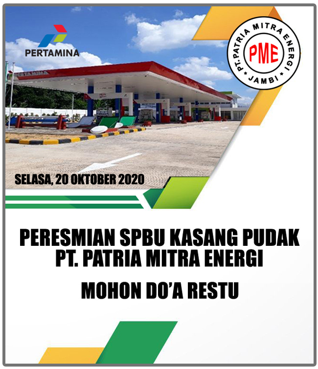 PT. PATRIA MITRA ENERGI meminta dukungan dan Doa Masyarakat sehingga SPBU bisa berjalan sebagaimana mestinya dan mengharapkan dengan adanya SPBU ini diharapkan mampu memenuhi dan meningkatkan perekonomian masyarakat khususnya di wilayah Kasang Pudak dan sekitarnya