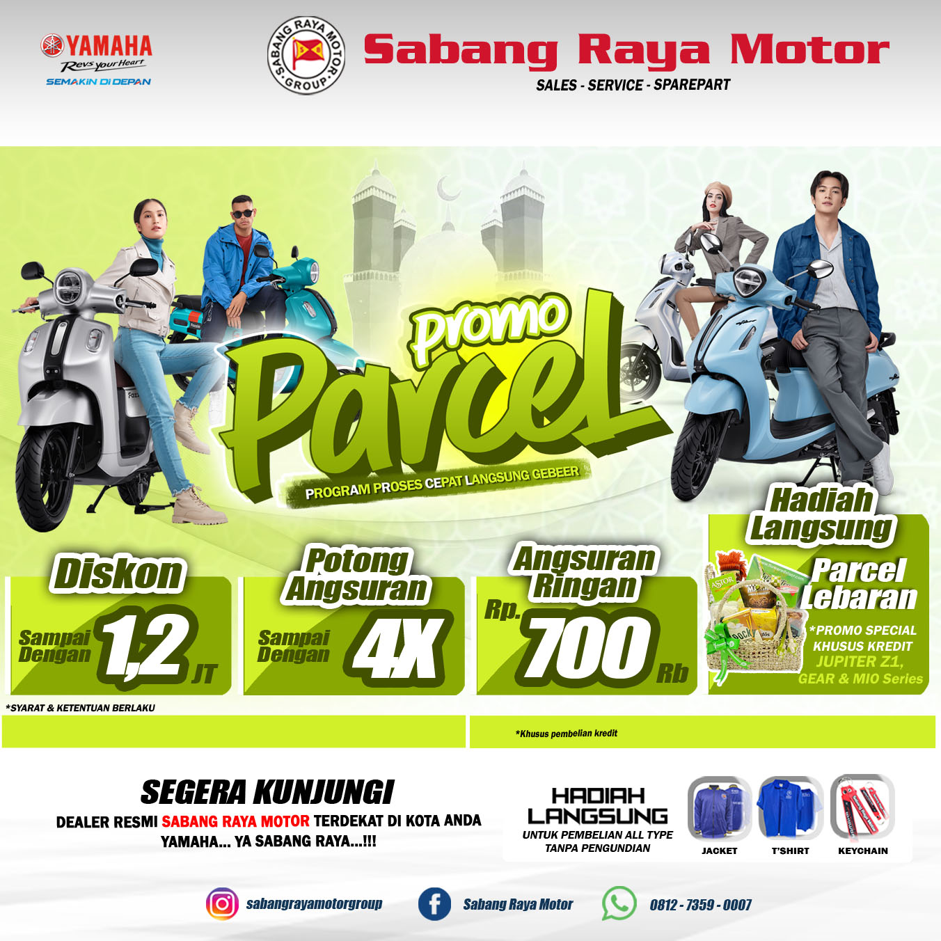 Jadi klo brosis beli motor di sabang raya motor, selain proses nya cepat brosis bakal dapat *Hadiah Langsung Parcel Lebaran loh..